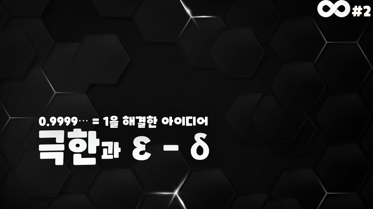 입실론-델타 논법은 생소한 문자의 도입으로 처음 배울 때 개념 자체를 상당히 어렵게 느낍니다. 더욱이 문자의 정적이고 형식적인 측면이 강조됨으로써 동적인 변수의 의미가 상대적으로 부각되기 어려워 학생들에게 혼란을 줄 소지가크다는 판단으로 현재의 학교 수학에서는 지도하는게 적절하지 않다고 여겨집니다. 따라서 학교수학에서는 앞에서 말한 개념을 설명은 하지만 비유와 유추를 사용하여 말로만 해야하는 한계에 선생님들마다 해설하는 방식도 다르고 여러분들이 이해하는 방식도 다를 수밖에 없습니다. 그래서 저는 여러분들이 이 영상을 통해 극한을 완벽하게 이해하시길 바라는 것보다는 처음 0.9999...=1을 배웠을 때 이해가 되지 않았던 부분을 조금이나마 해소하고 현대의 수학이 무한을 어떻게 바라보고 있는지만 알고 가신다면 좋겠습니다. 여기까지 무한 2편을 마무리하겠습니다. 이번 영상은 굉장히 논리와 수식으로만 전개한 이야기라 어려웠지만 다음 영상은 역설을 바탕으로한 '길이이론'을 다뤄볼 예정이라 재밌을거라 생각합니다.처음 무한을 배웠던 때가 언제 일까요? 중학교에서는 유리수를 정의하며 순환하는 무한소수를 다루게 됩니다. 그리고그 결과로 0.9999...=1임을 얻어냅니다. 유도과정을 잠시 살펴보겠습니다. 0.9999...를 s라 하면 10s=9.9999...이므로 이둘을 뺀 후 9 로 나누어주면 9s=9이므로 s=1임을 알 수 있습니다. 연산과정에서 보면 이는 너무나 명확해보이지만0.9999...는 1보다 작아보이는데 같다고 하는게 이해가 되진 않습니다. 고등학교에 올라와 극한에 대해 배우면 그래도이해가 되는 것 같지만 누군가 와서 태클을 걸면 틀린건 알겠는데 설명하기 힘드신 경험이 있을 것입니다. 사실 극한의개념을 다루지도 않고 바로 한 없이 나아간다는 개념으로 소수를 정의하나보니 중학교 과정에서 어려운 것은 당연합니다. 그래서 오늘은 수학에서 어떻게 극한을 어떻게 정의하는지 나아가 0.9999...=1인 것을 어떻게 정당화하는지 알아보도록 하겠습니다.