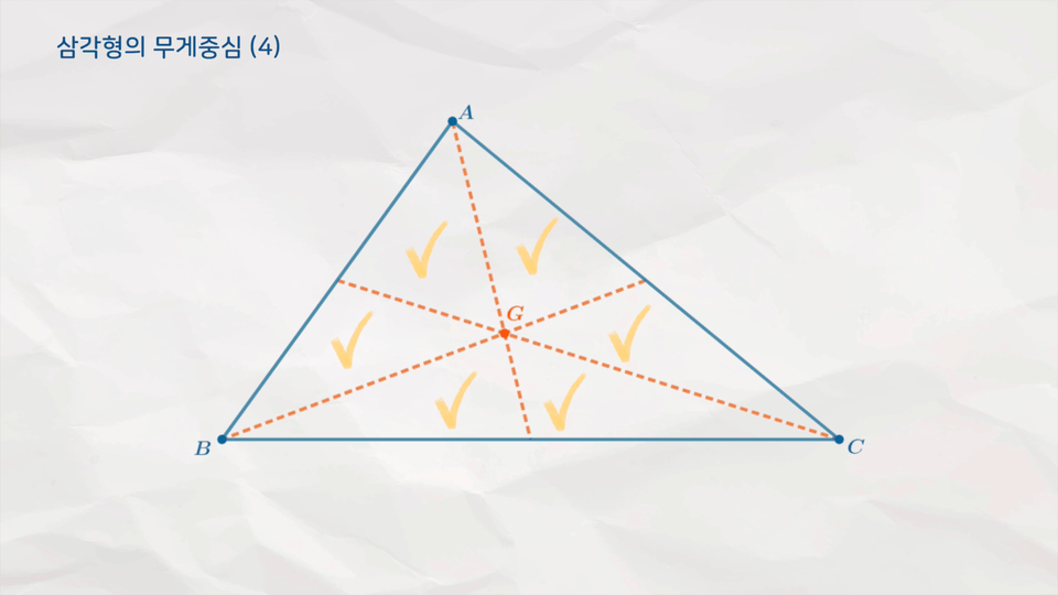 - 그리고 이렇게 생긴 $6$개의 삼각형의 넓이는 같습니다.
