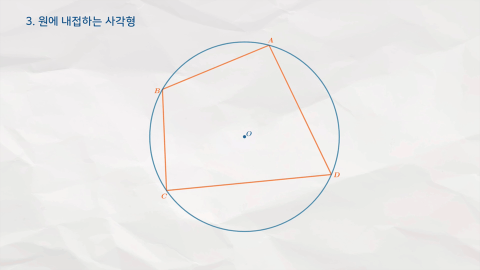 - 원에 내접하는 사각형의 대각의 합은 항상 $180^\circ$입니다.