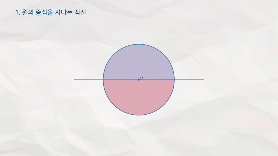 - 원의 중점을 지나는 직선은 원을 이등분 합니다.