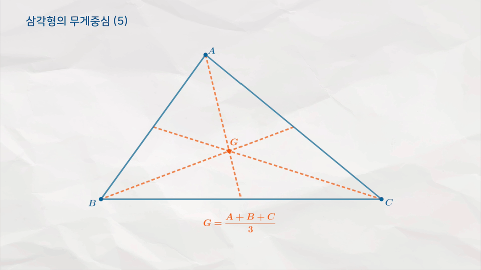 - 고등학교에 오시면 세 꼭짓점 좌표의 평균으로 무게중심의 좌표를 구할 수 있습니다.