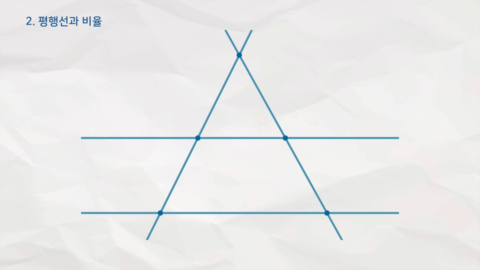 - 평행선과 만나는 서로 다른 두 직선이 만드는 길이들은 서로 일정한 비율을 유지합니다.