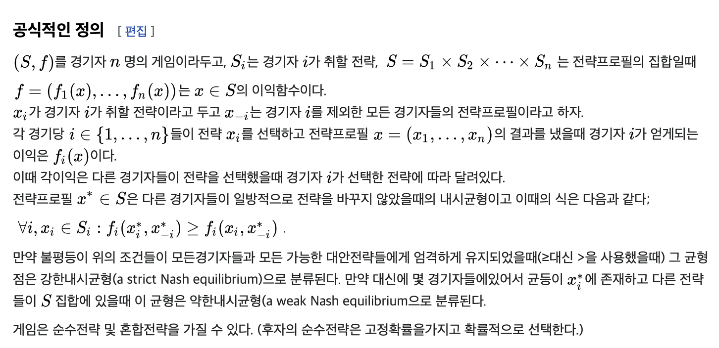 내시균형은 사람들이나 기업들이 서로간의 선택에 의지하여 동시에 결정해야 하는 상황일때 그들에게 일어나는 행동변화를 예측할 수 있는 방법을 제공합니다. 아까와 같은 미팅 상황에서 의도적인 규제로 모두 차선의 선택을 하면 보다 효율적인 결과를 이루어낼 수 있는 것 처럼 말이죠. 물론 이를 수식으로 다 풀어낸다면 어렵지만 전공자가 아닌 이상 이정도만 알아도 충분할 것 같습니다.